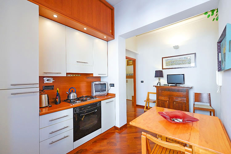 La deliziosa cucina abitabile, attrezzata di tutto punto con pentole e stoviglie, è spaziosa e fornita dei migliori elettrodomestici. Troverete frigorifero, congelatore, forno ventilato, cappa aspirante, tostapane, microonde combinato, bollitore, lavatrice ed una pratica TV LCD 24”. In appartamento è presente anche ferro ed asse da stiro, stendi biancheria ed aspirapolvere.